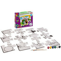 В наборе 12 крупных деталей пазла, 6 красок и 2 кисточки