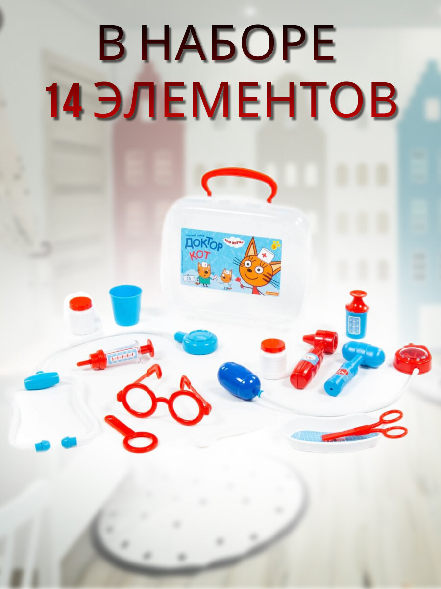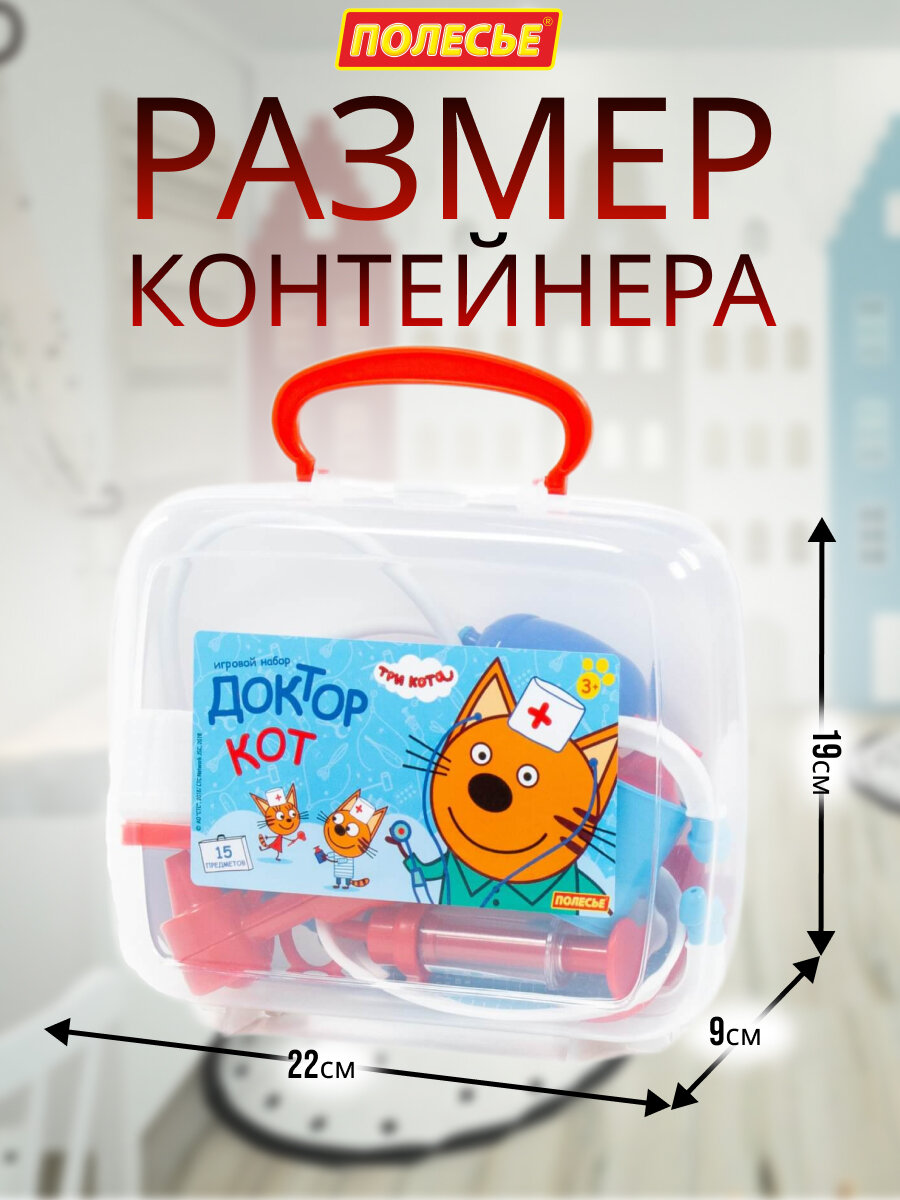 Теперь озорные котята из мультфильма «Три кота» будут радовать детей во время игр с набором доктора от фабрики «Полесье». Детские игрушки выделяются ярким дизайном, частью которого стали хвостатые персонажи из любимого мультсериала. «Три кота» рассказывают о повседневной жизни маленьких, но очень любознательных котят: Коржика, Компота и их младшей сестренки Карамельки. Внимание! Товар представлен в нескольких видах без возможности выбора. Цена указана за 1 комплект.