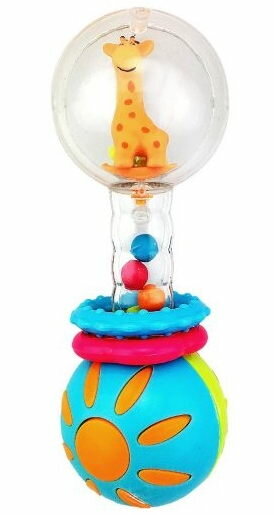 В самом раннем возрасте маленькие дети активно познают и изучают окружающий мир через сенсорное восприятие. Функциональная погремушка «Звонкая гантелька. Жирафик» поспособствует развитию у малыша зрительных и слуховых навыков, тактильных ощущений и хватательного рефлекса. Игрушка обладает совсем небольшим весом - крохе будет легко держать её в своей маленькой ладошке. Посередине гантельки имеются 2 фигурных колечка, которые можно перебирать пальчиками. Внутри погремушки - очаровательная фигурка маленького жирафика и разноцветные шарики, которые очень весело гремят при встряхивании.