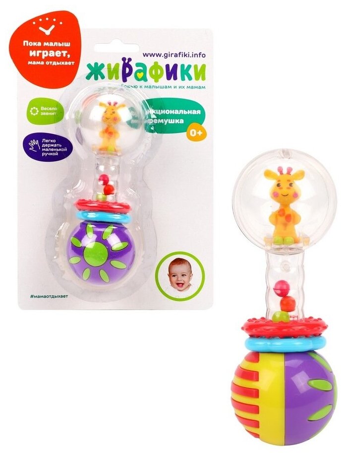 На сегодняшний день товар «Функциональная погремушка Жирафики "Звонкая гантелька. Жирафик" (939634)» можно купить с кешбеком в 1 магазине: Яндекс.Маркет