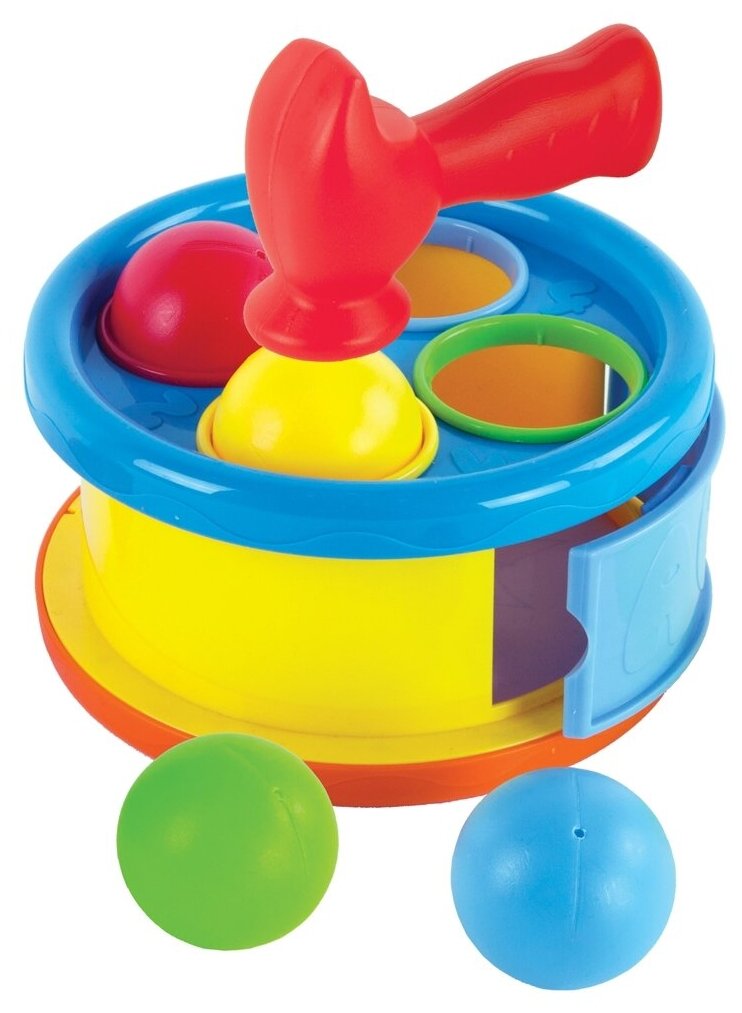 Жирафики Сортер Бей в барабан Малыши обожают бить в барабан, потому что это очень весело! А наш барабан еще и с секретом! С одной стороны барабана - обычная пластиковая мембрана. Малыш может ударять по ней молоточком, издавая негромкий, не раздражающий слух звук. С другой стороны барабана - развивающая игрушка-сортер. С помощью молоточка малыш может забивать разноцветные шарики в соответствующие им по цвету отверстия, одновременно тренируя координацию движений и запоминая цвета. Достать шарики можно через специальную дверцу в боковой части барабана - и можно начинать игру сначала! Особенности: Диаметр игрушки 17 см, высота 9 см. Изделие изготовлено из пластика. Рекомендованный возраст: 6 мес. +.