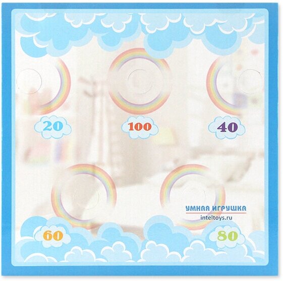 В комплект входит игровое поле на обороте коробки, корзина (5шт.), шарик (20шт.).