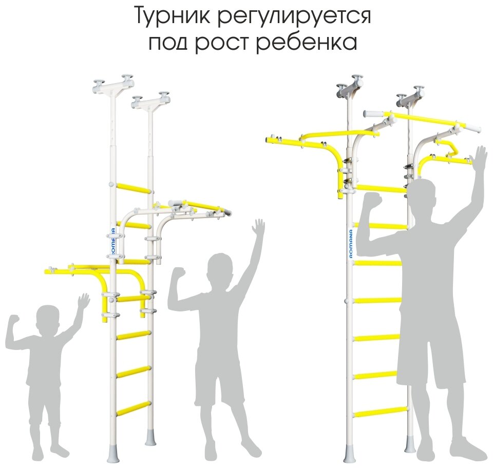 Детский спортивный комплекс Romana R6 один из самых увлекательных комплексов для ребенка любого возраста, с креплением пол-потолок (враспор). Его легко установить в любом удобном месте дома или квартиры. Взбираясь по веревочной лестнице, ребенок может ухватиться за перекладину, ведущую к турнику, с него переместиться на канат и затем спуститься вниз- эта мини игра так увлекательна для маленьких искателей приключений. Убрав перекладины можно перемещать турник пониже, для занятий маленьких детей — все делаетс...