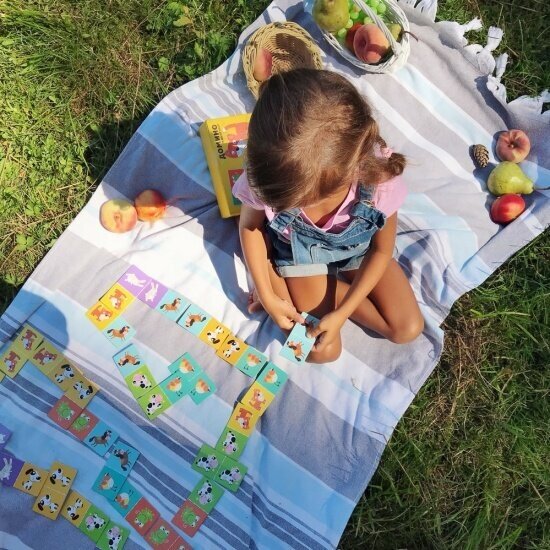 Настольная игра Домино "Животные" состоит из 28 карточек. На каждой нарисованы животные. Задача детей поочередно выстроить цепочку, прикладывая карточки друг к другу одинаковыми рисунками. В процессе игры у детей развивается логическое мышление, внимательность. Изготовлены детали игры из легкого, плотного картона.
