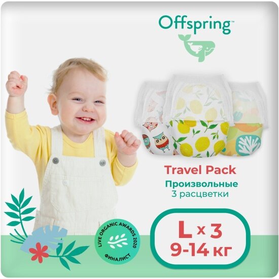 На сегодняшний день товар «Подгузники-трусики Offspring Travel pack L 9-14кг 3шт. (OF02LFOA) (размер: 4/L)» можно купить с кешбеком в 1 магазине: Яндекс.Маркет