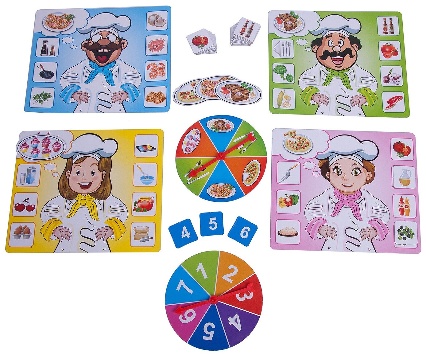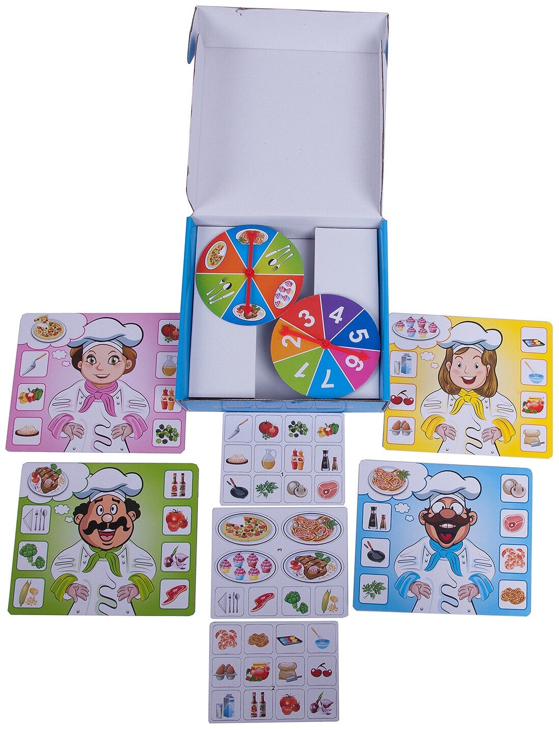 | Комплектация | кулинарный рецепт - 4 шт; карточка с ингредиентами - 3 шт; игровой барабан - 2 шт |