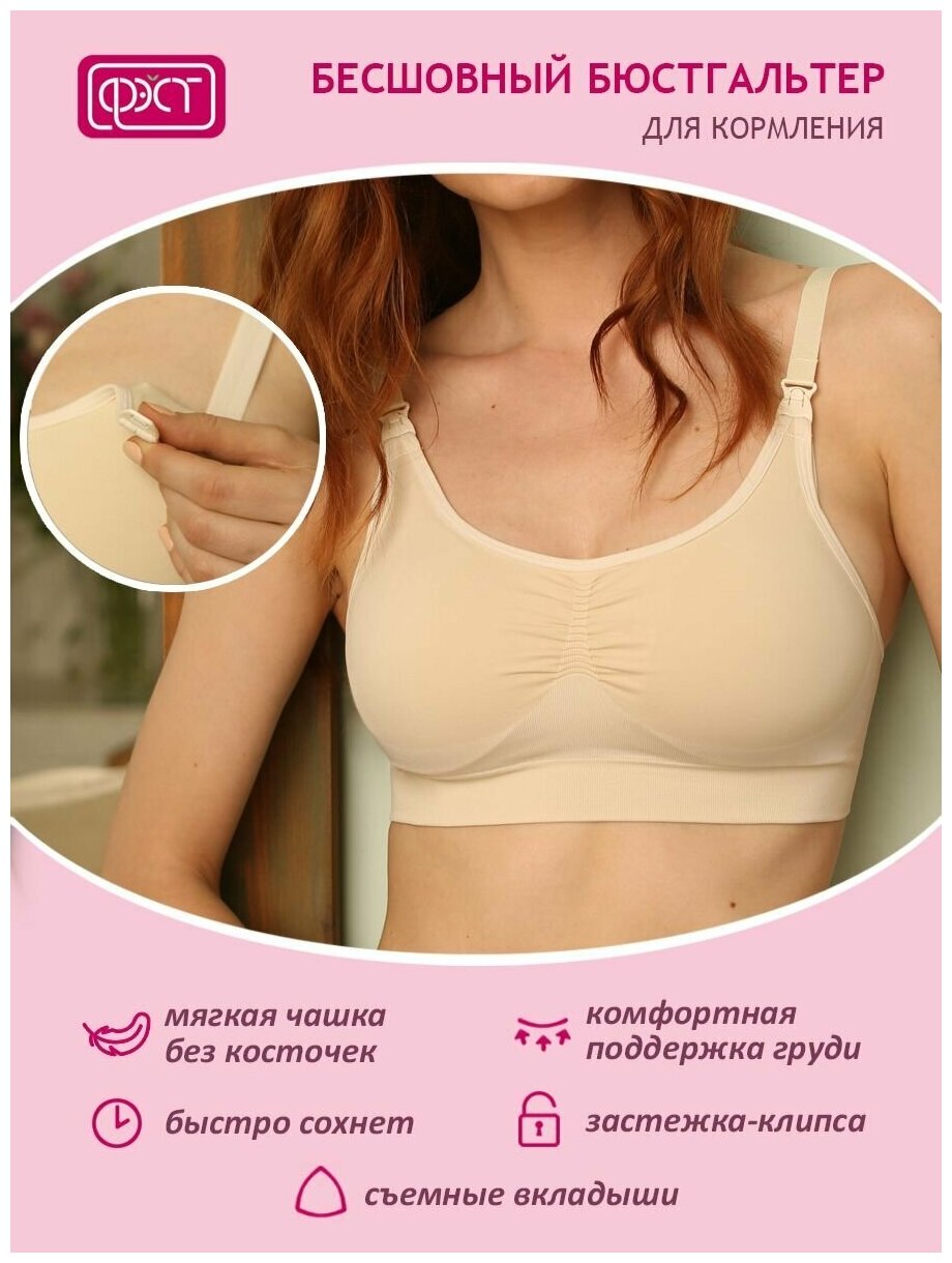 - Бюстгальтер бесшовный Б-294 для кормящих женщин с формованным вкладышем бежевый
