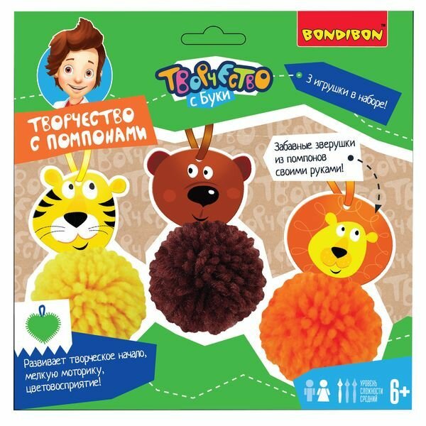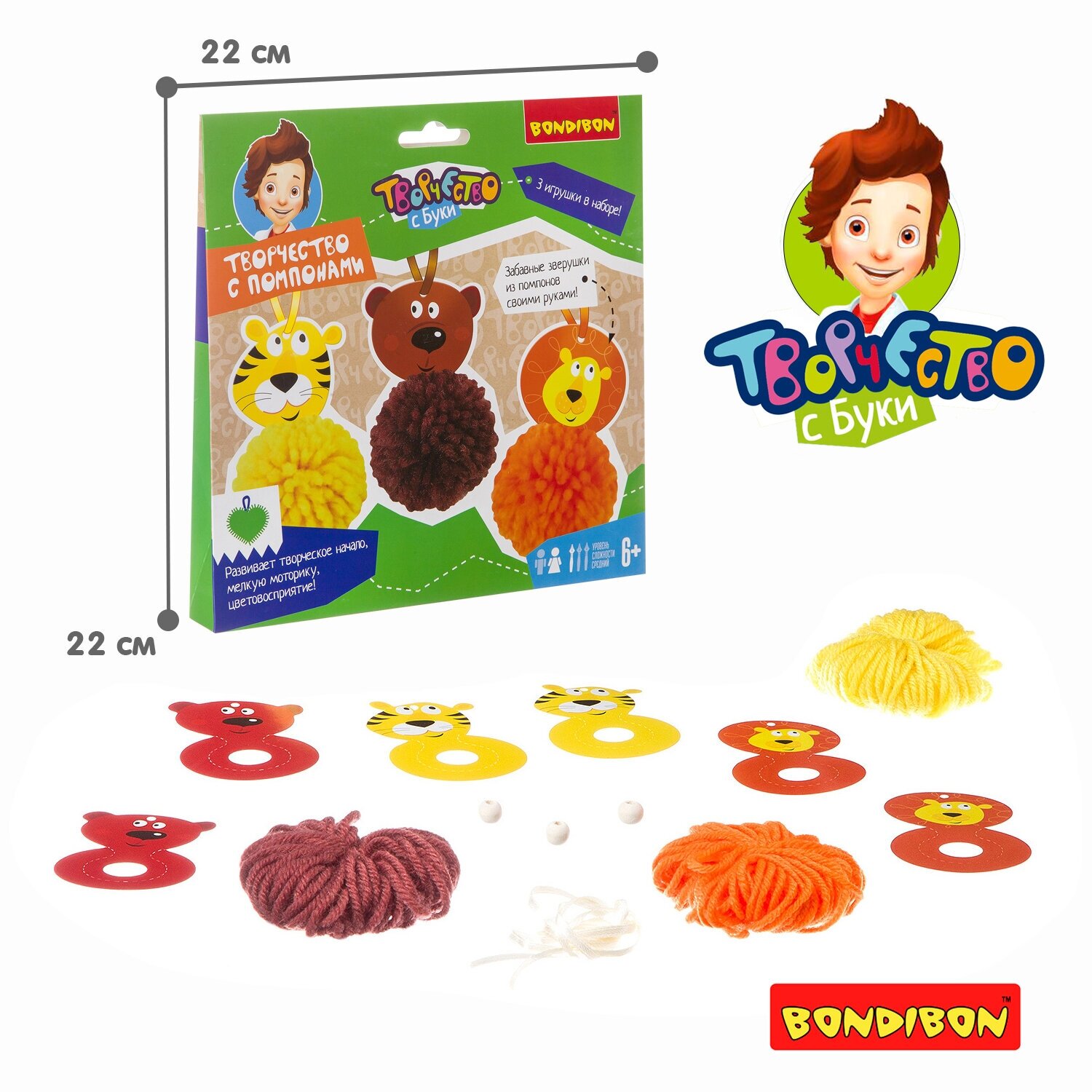 Набор для творчества Bondibon "Творчество с Буки. Творчество с помпонами. Забавные зверушки!" (ВВ2690)