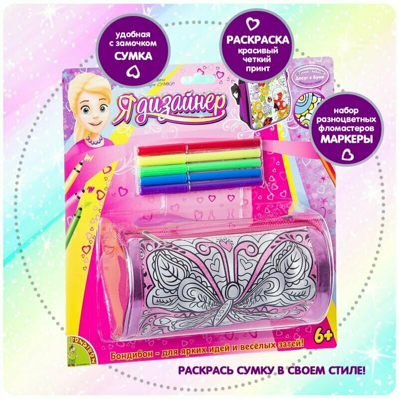 Сумка для раскрашивания Bondibon с блестками "Я дизайнер" (ВВ2305)