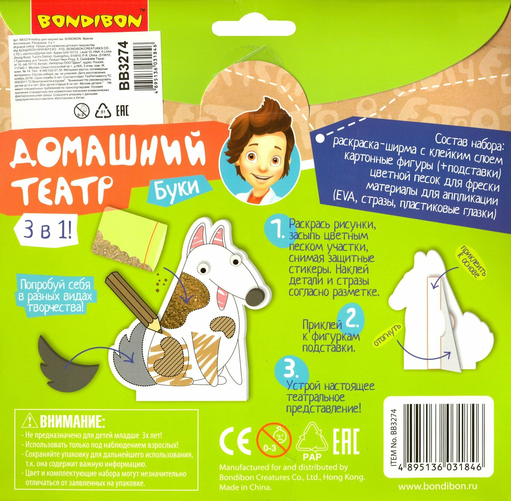 На сегодняшний день товар «Набор для творчества Bondibon 3в1 "Домашний театр: раскраска фреска аппликация" Набор для творчества Фреска аппликация раскраска 3 в 1» можно купить с кешбеком в 1 магазине: Яндекс.Маркет