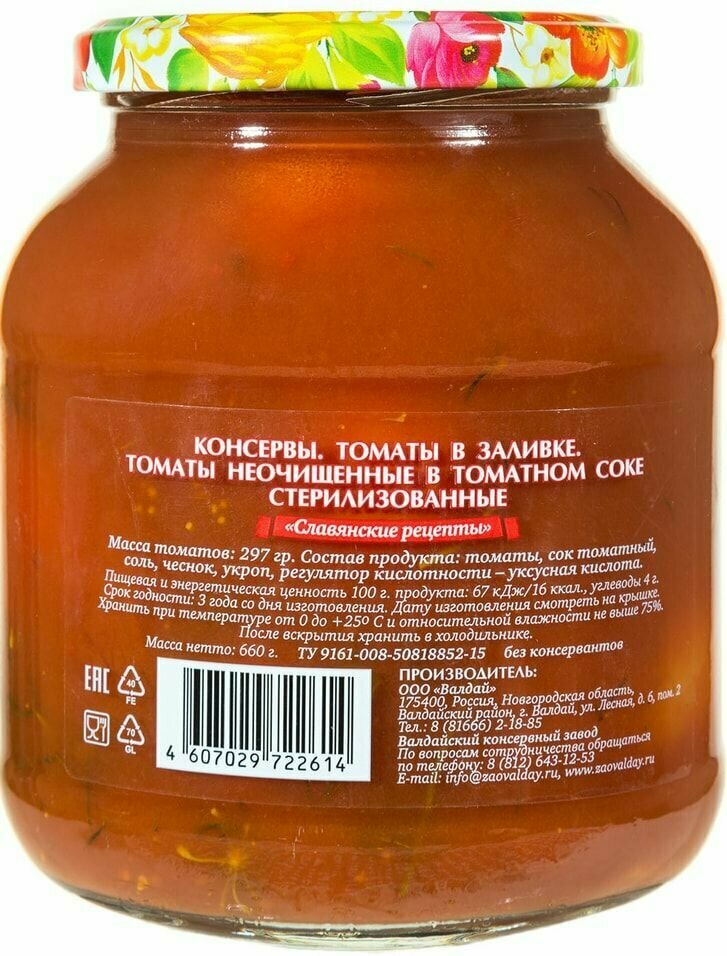Томаты Валдайский погребок "Кубанские" неочищенные в томатном соке 720мл (22614)