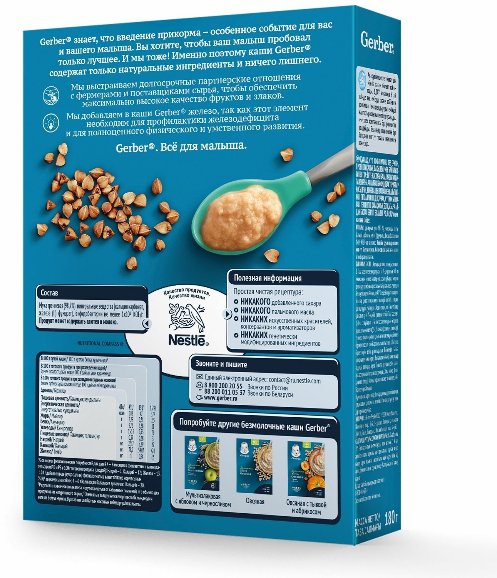 Gerber ® Безмолочная гречневая гипоаллергенная каша 180гр (12383349)