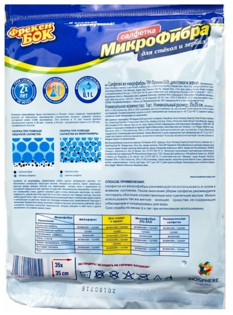 Салфетки из микрофибры рекомендуется использовать в сухом и влажном состоянии. Можно использовать также мягкие моющие средства, не содержащие отбеливатели и кондиционеры для воды.