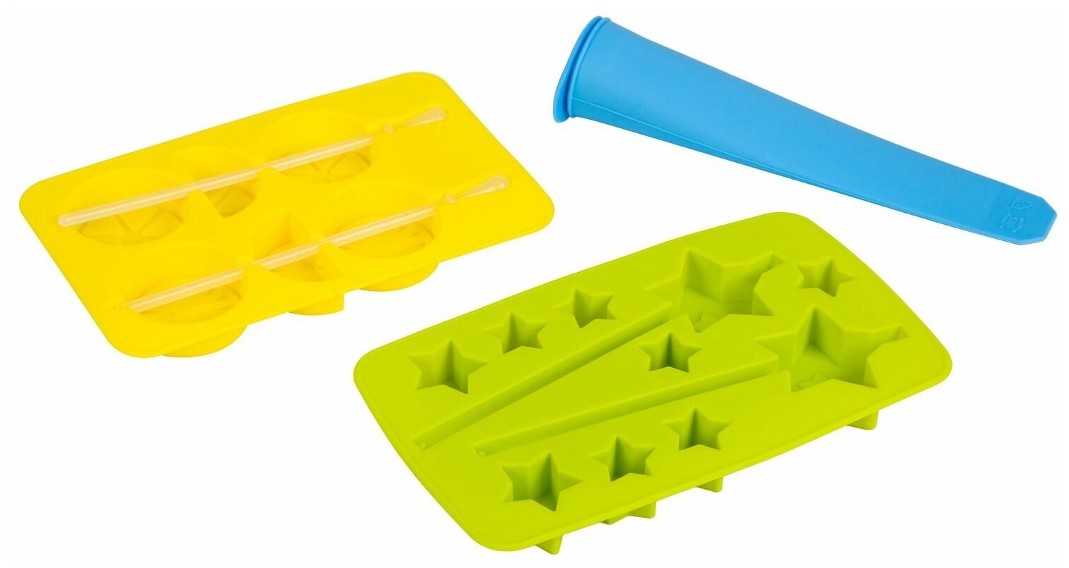 | Комплектация | форма для фруктового сорбета, форма для мороженого в виде звездочки (с палочками), форма для мороженого в виде кусочков фруктов (с палочками). |