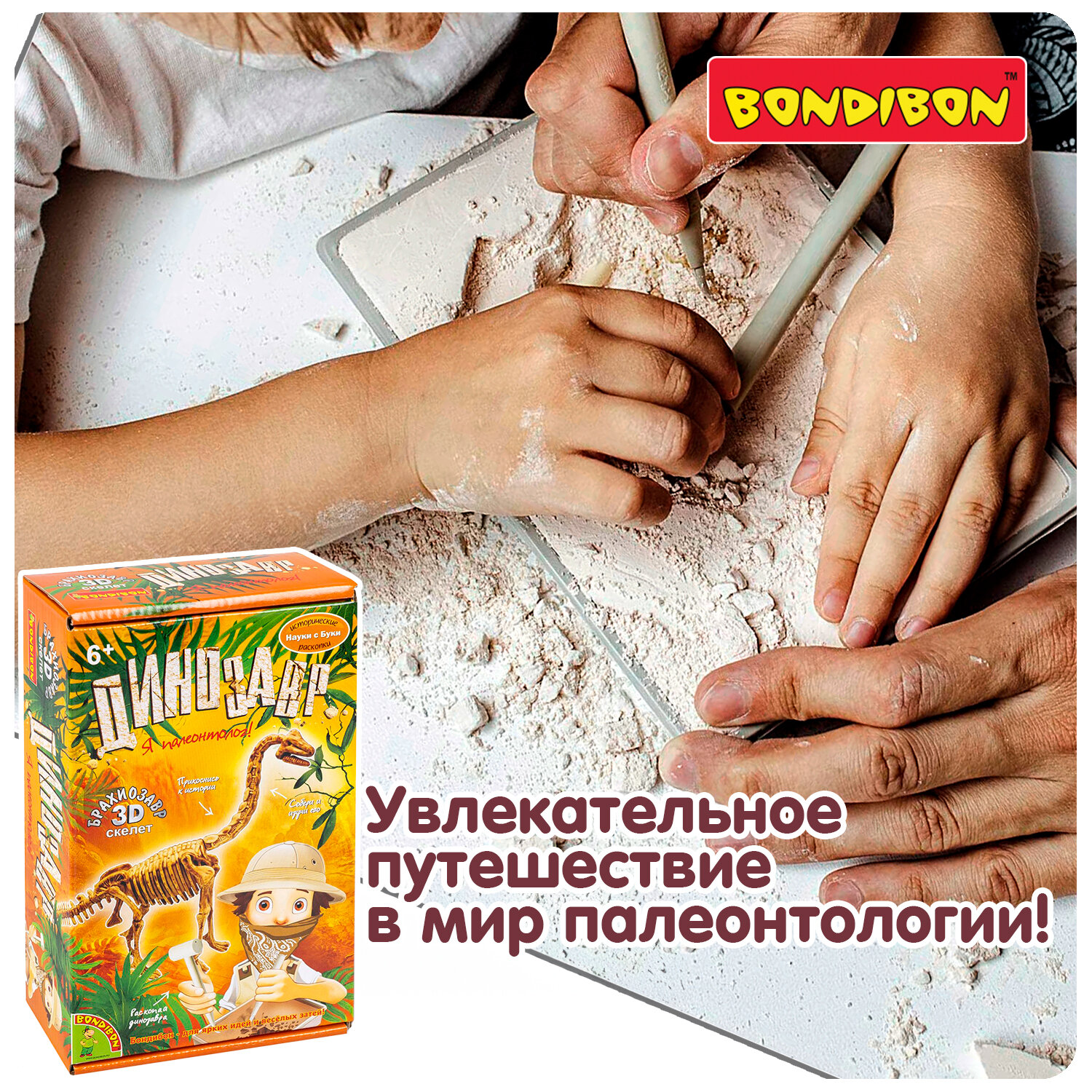 Узнавать интересные факты о полезных ископаемых и самому обнаружить динозавра можно в любом возрасте. Даже самые маленькие могут почувствовать себя палеонтологами, изучающими древний мир, с набором для проведения палеонтологических раскопок "Брахиозавр". Используя набор настоящих инструментов палеонтолога, ребенок сможет самостоятельно найти скелет самого древнего животного на Земле, очистить его от вековой пыли, а затем собрать реалистичную 3D-модель динозавра! Даже если с первого раза все получится неидеально, ничего страшного. Подробная инструкция покажет, как собранный скелет можно использовать для повторной игры.