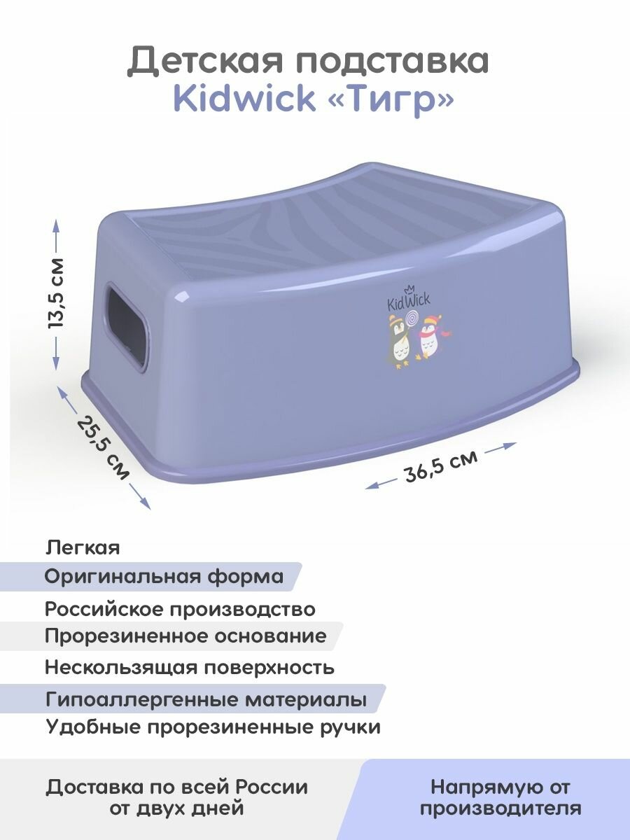 Подставка для ног "Тигр" от бренда Kidwick поможет малышу в ежедневных делах. Благодаря ей он сможет дотянуться до раковины, унитаза, взять игрушку с полки.