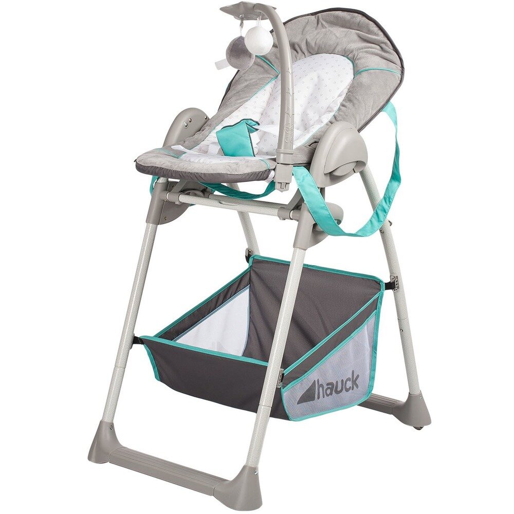 Стульчик для кормления Hauck Sit'n Relax + шезлонг для новорожденного Стульчик Hauck Sit'n Relax новая модель интересного многофункционального детского изделия. Такое необычное совмещение позволяет использовать универсальное изделие - стульчик для кормления Hauck Sit'n Relax 2 в 1 + шезлонг для новорожденного - с первых дней рождения и до 3 лет. Шезлонг для новорожденного оснащён 3 точечными ремнями безопасной поддержки младенца, регулируемой по наклону спинкой, а музыкальная мобиль с шикарными плюшевыми игрушками отлично развлечет малыша. Предназначено использование шезлонга для крох до 9 месяцев и до максимального веса 9 кг. Кресло стульчика удобно для малыша наличием 3-х позиционной спинкой сиденья, 5-точечными привязными ремнями безопасности, ограничителем между ножек и регулируемой подножкой для ног по высоте. Особенности: стульчик можно установить в любом из 6 положений по высоте, чтобы ребенок мог сидеть рядом со взрослыми как за общим обеденным столом, так и на высоте дивана Практичный двойной поднос (съемный и моющийся) используется с успехом как для приема пищи, так и увлекательной игры, сидя за столиком Большое просторное сиденье Широкие удобные подлокотники 2 задних колеса (с фиксацией) позволят перемещать стульчик Sit n Relax по мере необходимости Ткань сидения мягкая и приятная, возможна ручная стирка Объемная сетка-корзинка для детских аксессуаров и любимых игрушек Компактно складывается Характеристики: Размер детского стула: 75 х 53 х 105 см Размер стульчика для кормления в сложенном виде: 93 х 53 х 25 см Размеры кресла-сиденья: 30 х 25 см Размеры шезлонга для новорожденного: 80х 40 см Вес: 8.5 кг В комплекте: Рама Шезлонг для новорожденного Мягкие подвесные игрушки Сидение-кресло стульчика
