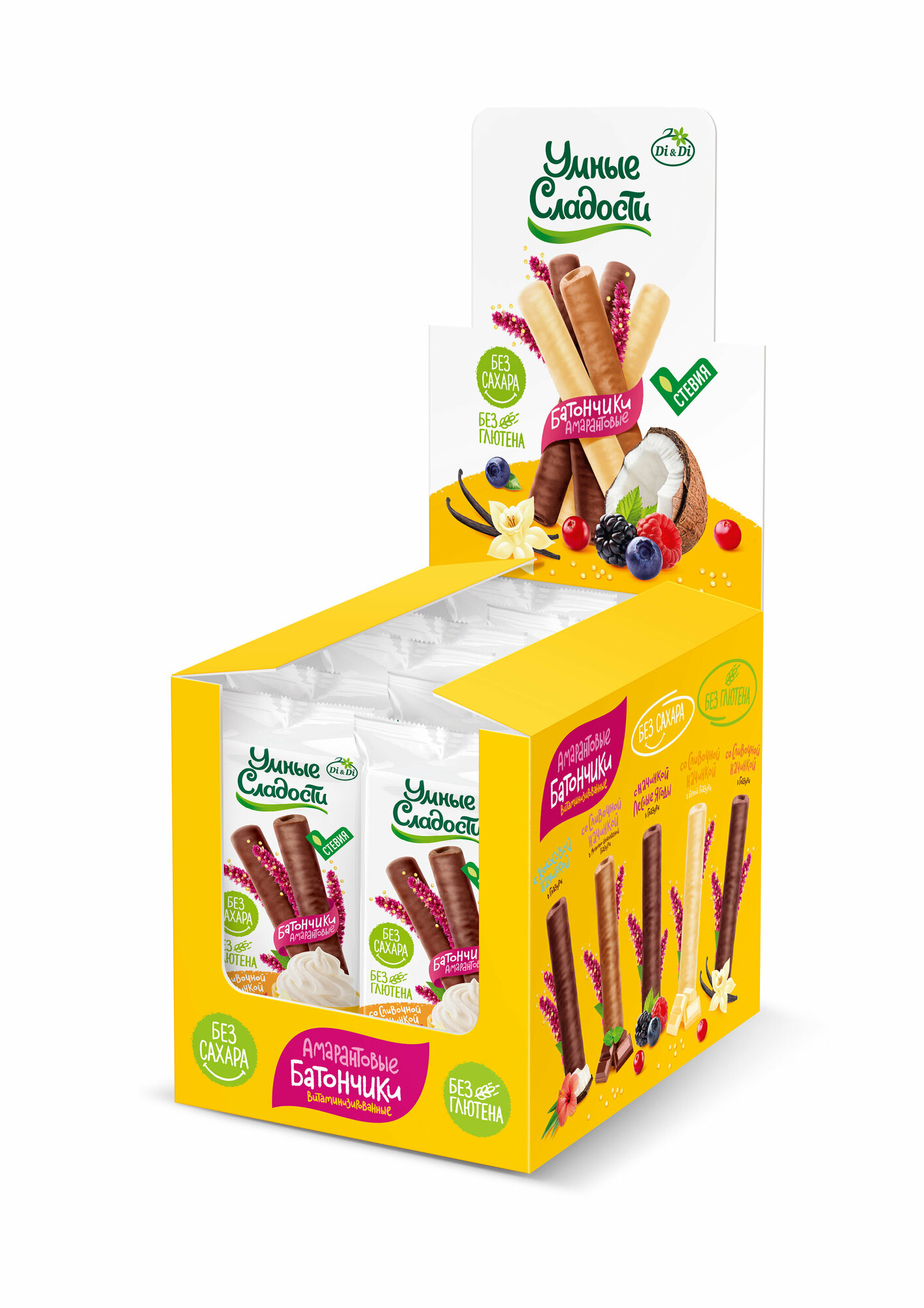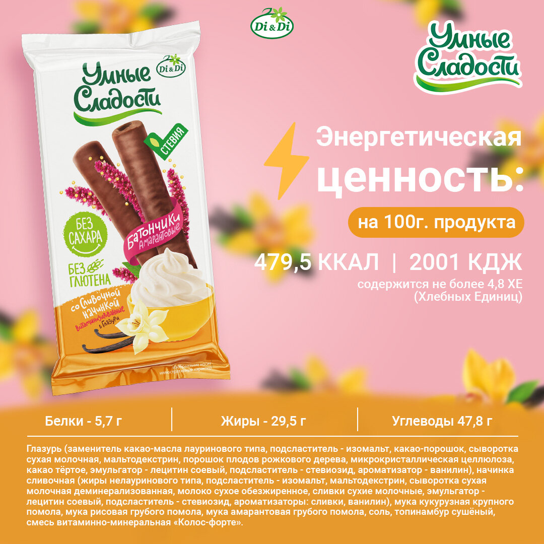 Батончики "Умные сладости" амарантовые безглютеновые со сливочной начинкой 20гр Di&Di (2340)