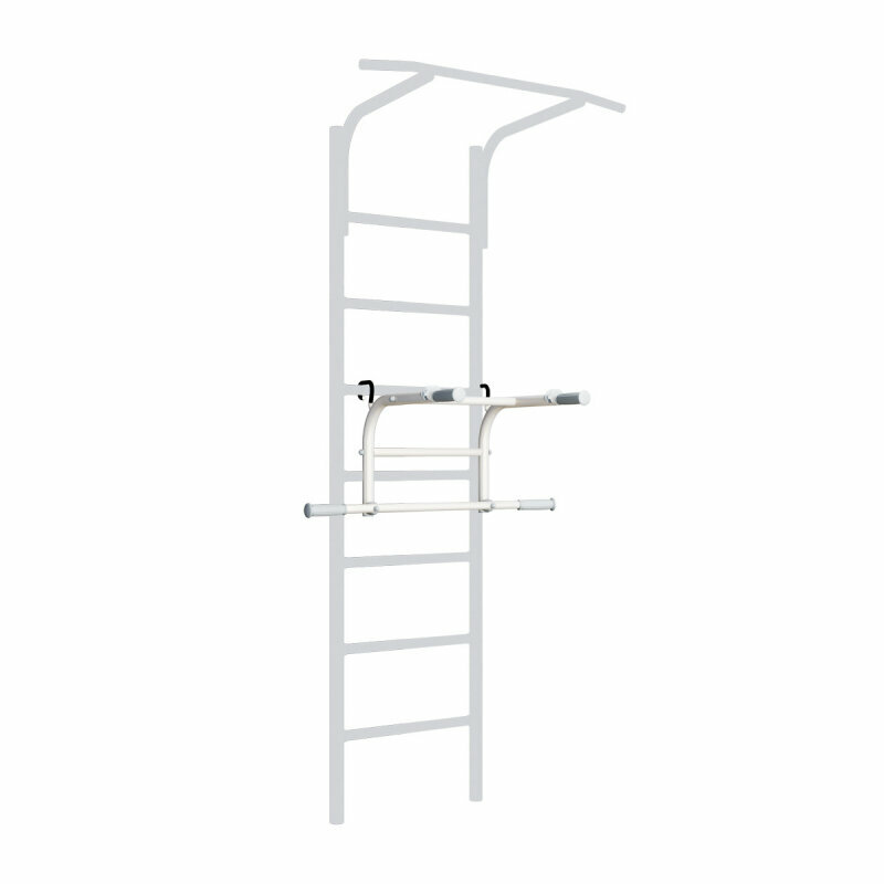 Турник-брусья - навесное оборудование, которое подойдет к комплексу Romana шириной 490 мм. Оно крепится на перекладину лестницы в одном из двух положений. Простая, но надежная система фиксации позволяет быстро изменить положение и продолжать занятия. Турник-брусья позволяет выполнять разные упражнения: как вис и подтягивания, так и отжимания и упражнения на пресс.