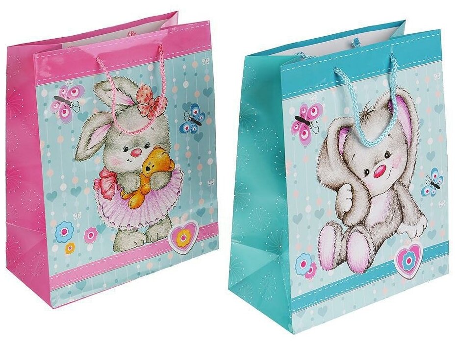 Пакет подарочный Играем Вместе "Зайка" 26х32х14см розовый (CLRBG-ZAI-02 роз)