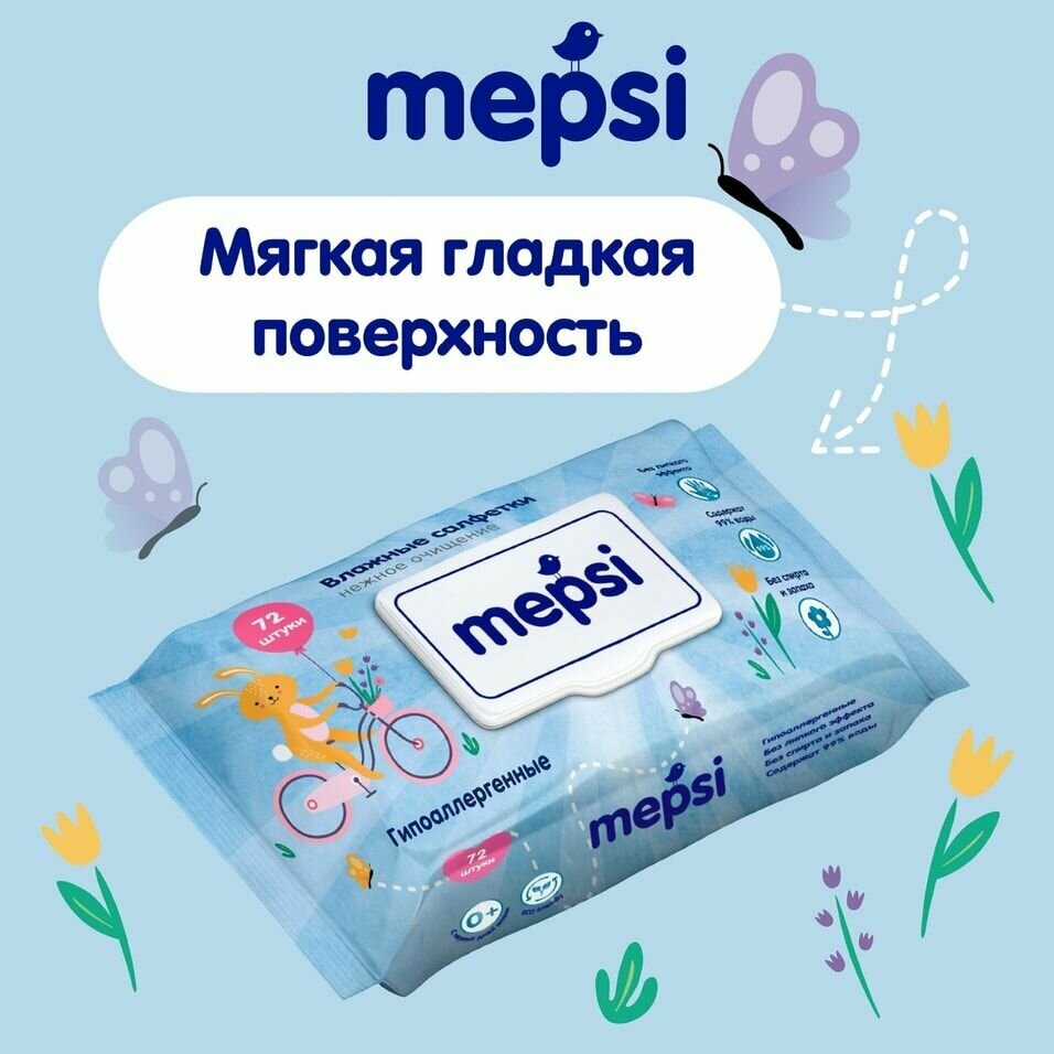 Уже более семи лет влажные салфетки MEPSI являются одним из лучших выборов для нежной кожи малышей и их мам. Наши влажные салфетки от 0 месяцев безопасны при облизывании, лишены опасных консервантов и добавок. Они помогают стереть грязь и жир, а также способствуют дезинфекции и ускоренному заживлению мелких ранок, подходят для жирной кожи лица. Влажные салфетки MEPSI являются практичными современными ЭКО-товарами, которые легко носить с собой в сумочке, кармане и отсеках коляски. преимущества: · гипоаллергенность. Одноразовые салфетки не раздражают кожу и одинаково хорошо подходят как для новорожденных, так и для взрослых с проблемной кожей· дезинфекция. Салфетки эффективно справляются с поверхностными инфекциями и помогают продезинфицировать ранки за счет антибактериальных свойств экстрактов алоэ и ромашки, а также благодаря витаминам E и д - пантенолом, способствующими заживлению кожи· отсутствие липкости. Благодаря 99% чистой воды в составе без спирта и прочих химических добавок, водные салфетки детские оставляют приятное ощущение на коже без дискомфорта· удобная упаковка позволяет доставать влажные салфетки строго по одной штуке, но при этом маленькая и даже большая пачка не занимают много места· долгое хранение. Конструкция пластикового клапана упаковки предотвращает высыхание и оставляет нетканные салфетки свежими и готовыми к использованию· нетканое полотно. Салфетки имеют плотную, но в то же время мягкую структуру, которая не повредит коже малыша, а большой размер позволит эффективно использовать их в любой ситуации· удобный формат. Компактный размер пачки позволяет взять её с собой в карман, сумку или коляску цель компании MEPSI: Производство безопасной продукции для детей любого возраста. Мы постоянно развиваем линейки ЭКО-товаров, используя новые технологии и инновационные подходы, поэтому родители могут быть уверены: их дети пользуются только безопасной и эффективной продукцией.