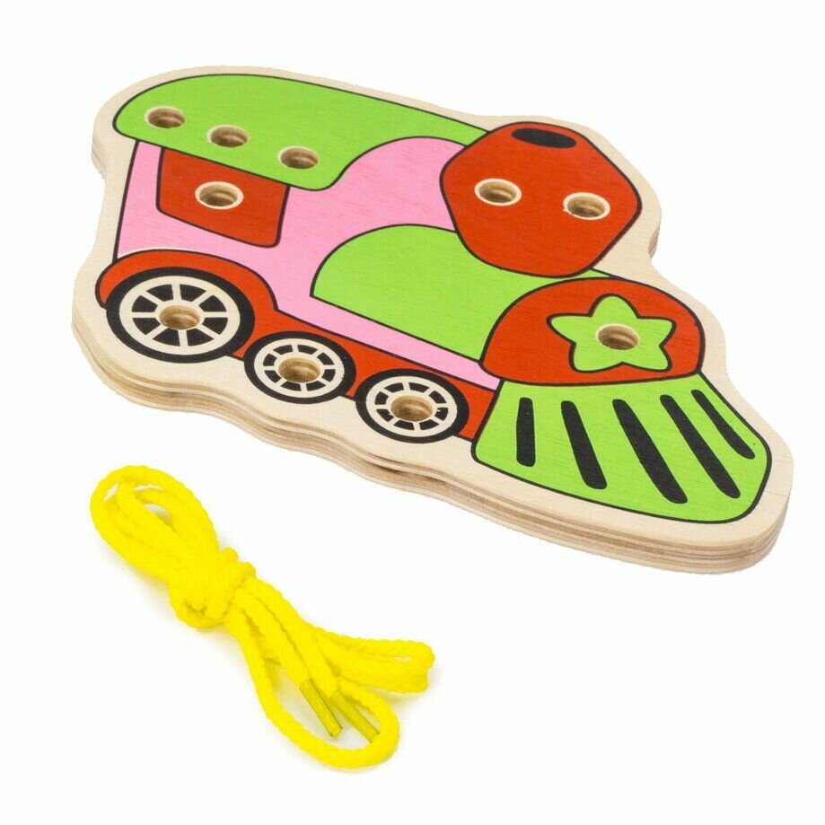 Шнуровка Поезд Алатойс (Alatoys) - развивающие деревянные игрушки