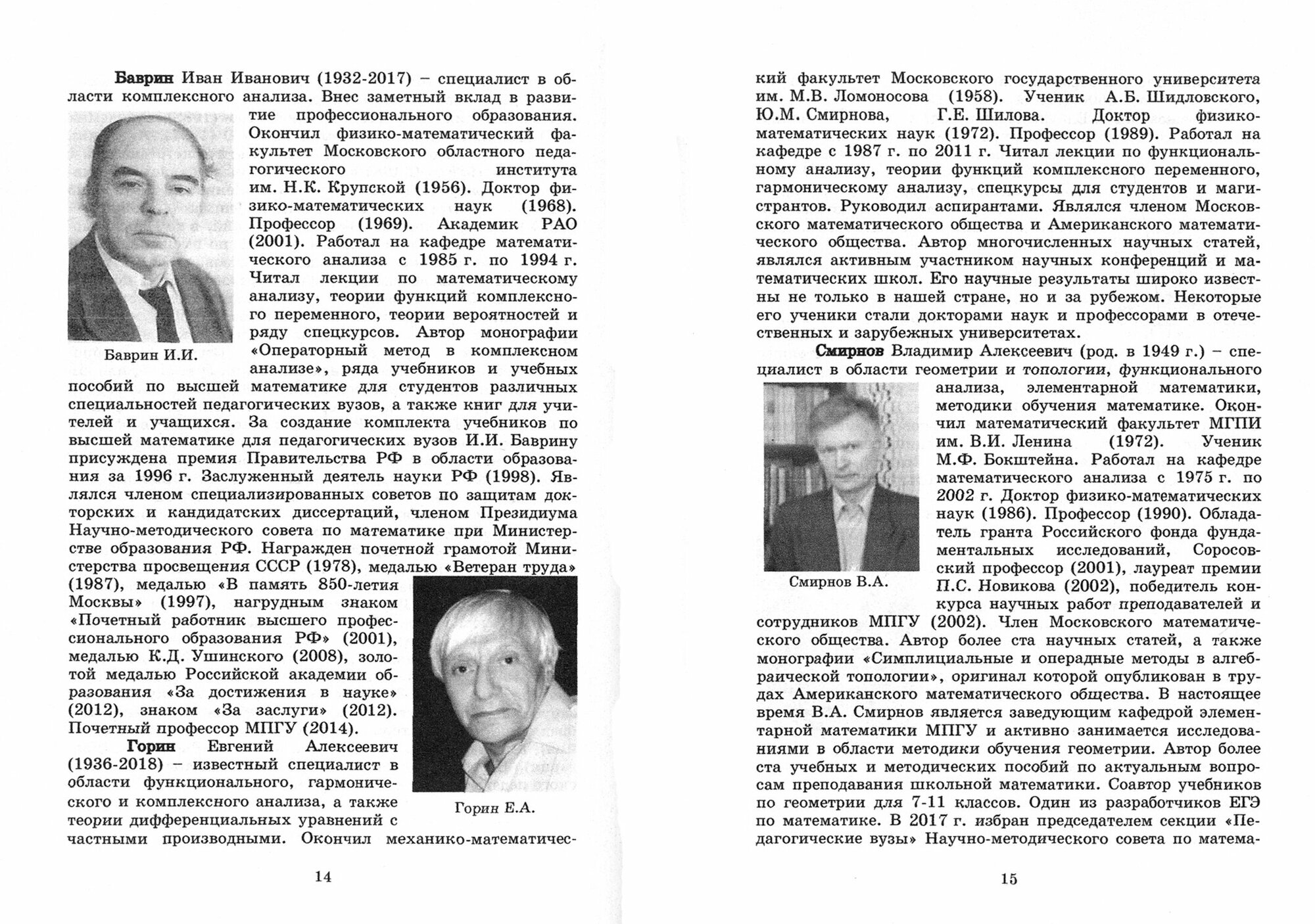 История кафедры математического анализа МПГУ в лицах и датах. Исторический очерк (Быкова Ольга Николаевна, Геворкян Павел Самвелович, Тимофеева Ирина Леонидовна, Сергеева И. Е.); Прометей, 2019