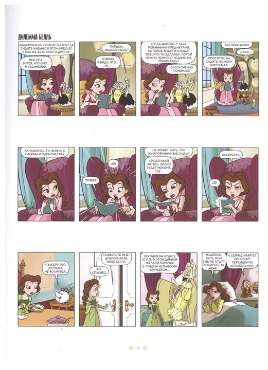 Мне очень, очень, очень понравилась эта коллекция. Я действительно восхищаюсь тем, как автор вышел за рамки типичных сюжетных линий Disney Princess — всех этих скучных бытовых историй о том, как найти кому-то подарок на день рождения или что-то в этом роде — и действительно сосредоточился на историях отдельных персонажей и возможностях для юмора в каждом из них. Белль пытается уединиться от собственной мебели, Мулан тренирует своих друзей в бою, феи Авроры пытаются помочь ей приспособиться к жизни во дворце — личности персонажей действительно просвечивают забавными способами. Искусство очень милое и делает ту же замечательную работу, сохраняя принцесс отдельными и в гармонии с их собственными историями, а не просто рисуя их в костюмах из фильмов до тошноты. Я очень надеюсь, что они продолжат эту серию!