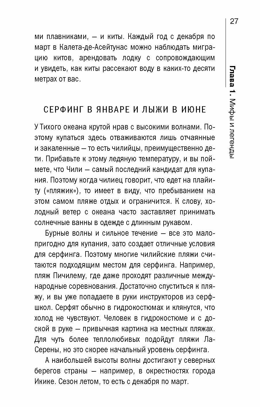Отличная книга! История, география, культура, экономика, социальная жизнь, достопримечательности, языковые особенности и многое другое о Чили есть здесь. Рекомендую всем, кто интересуется Латинской Америкой, путешественникам, потенциальным эмигрантам в ЛА и любителям страноведения.