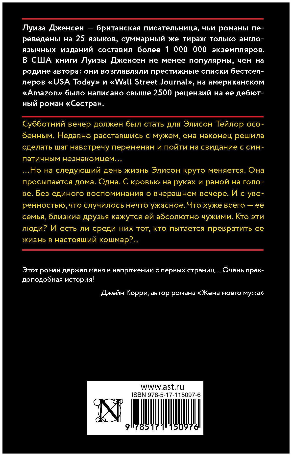 …Но на следующий день жизнь Элисон круто меняется. Она просыпается дома. Одна. С кровью на руках и раной на голове. Без единого воспоминания о вчерашнем вечере. И с уверенностью, что случилось нечто ужасное. Что хуже всего — ее семья, близкие друзья кажутся ей абсолютно чужими. Кто эти люди? И есть ли среди них тот, кто пытается превратить ее жизнь в настоящий кошмар?..