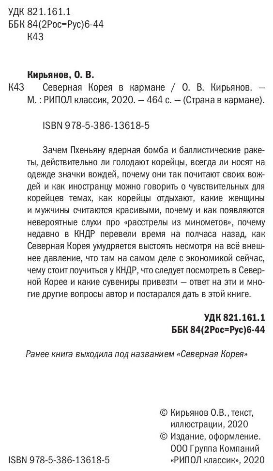 Сервис сравнения цен СкидкаГИД предлагает сравнить цены на товар «Книга: Северная Корея в кармане (Кирьянов Олег Владимирович); Рипол-Классик, 2020»