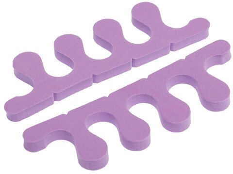 Профессиональные разделители для пальцев – это удобные высококачественные приспособления из безопасных полимерных материалов. Разделители для обеих ног представляют собой упругую губку, выполненную в фигурной форме. Стильные разделители хорошо держат необходимое расстояние между пальцами, не давая им соприкасаться. Материал прочный, но достаточно гибкий, его легко и просто содержать в чистоте. С разделителями можно легко передвигаться, не боясь испортить свежий педикюр.