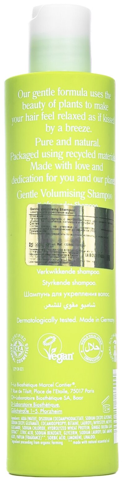 Ухаживающий натуральный шампунь для объема волос со специально подобранным комплексом растительных ингредиентов.