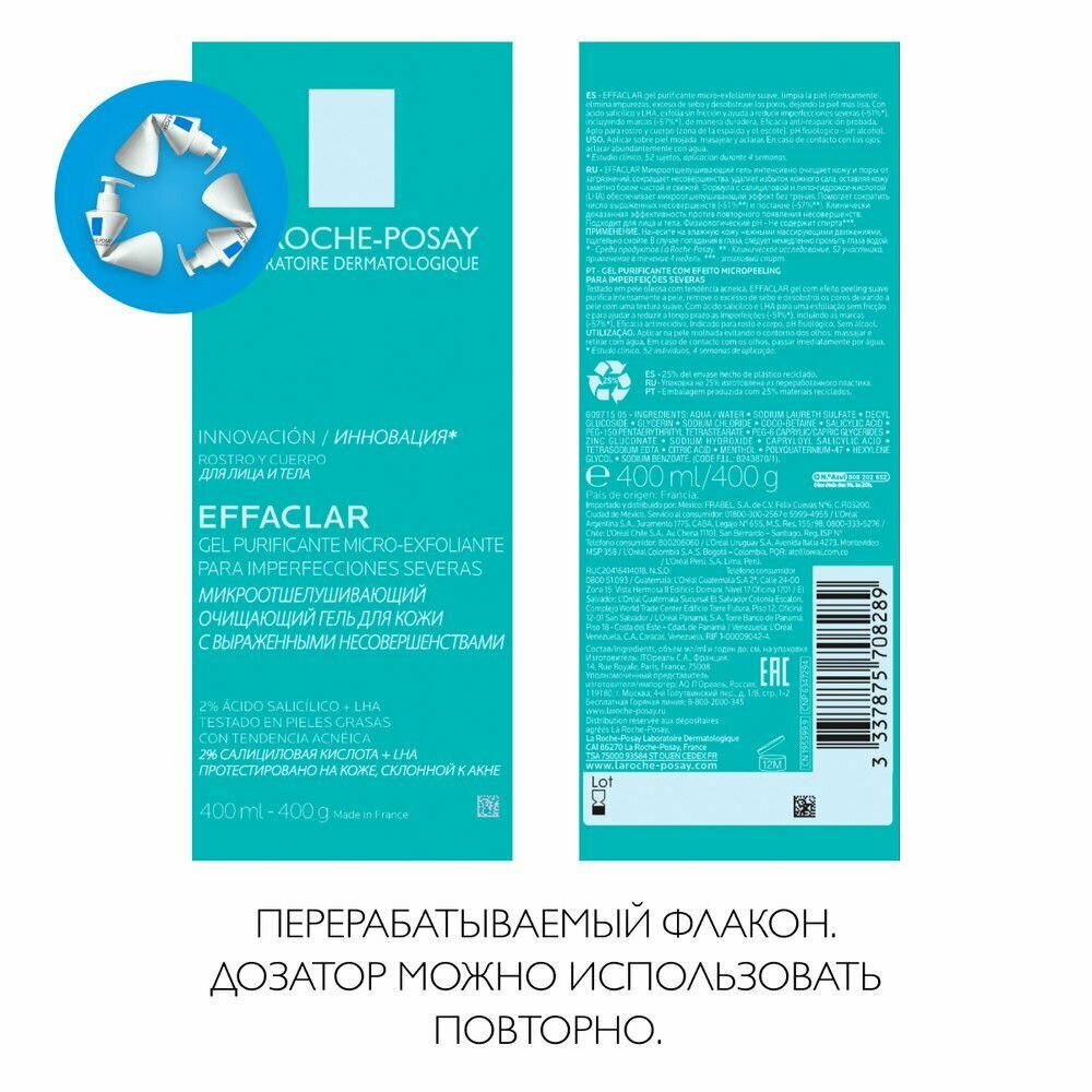 | Состав набора | ЛЯРОШ Эфаклар очищ. микроотшелуш.гель д/лица и тела 400мл |