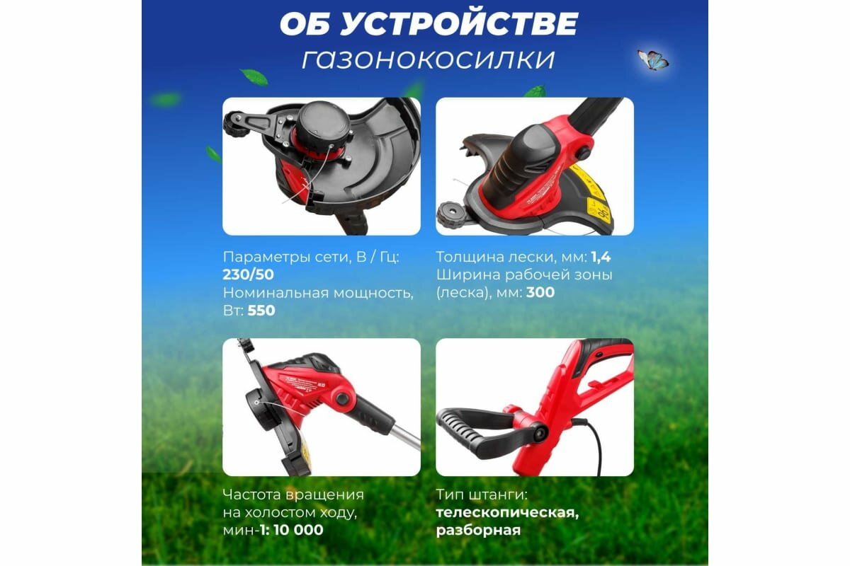 | Аксессуары | - электротриммер- катушка под леску |
