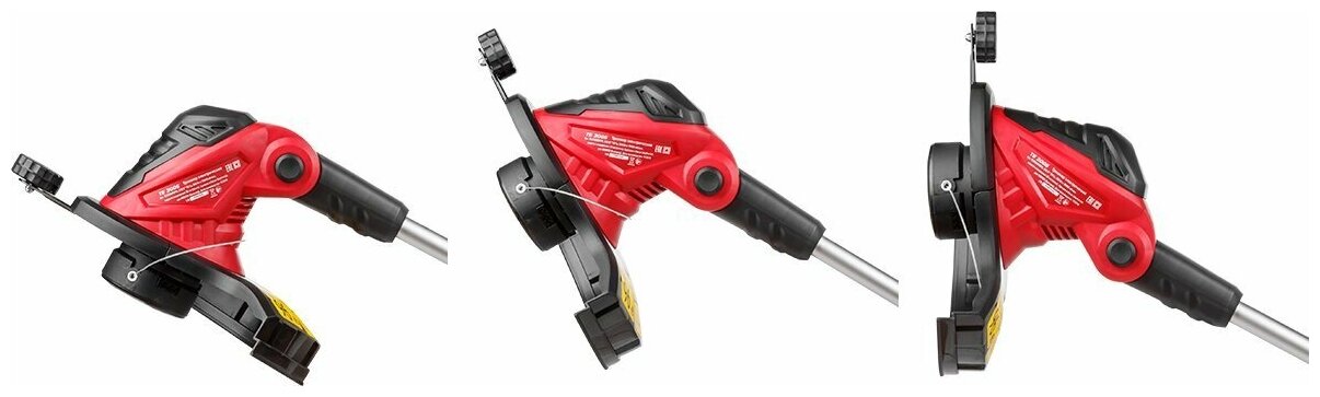 - поворотная режущая головка позволит удалить лишнюю растительность в труднодоступных местах;