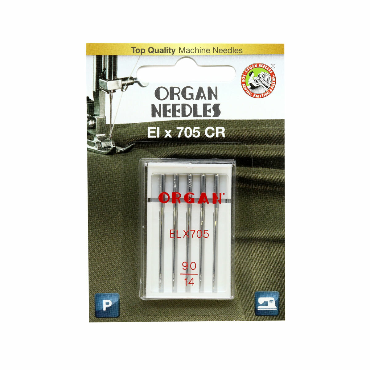 Иглы ORGAN ELх705 CR. CR 5/90 разработаны специально для распошивальных швейных машин. Предназначены для работы с высокоэластичными тканями и трикотажным полотном.