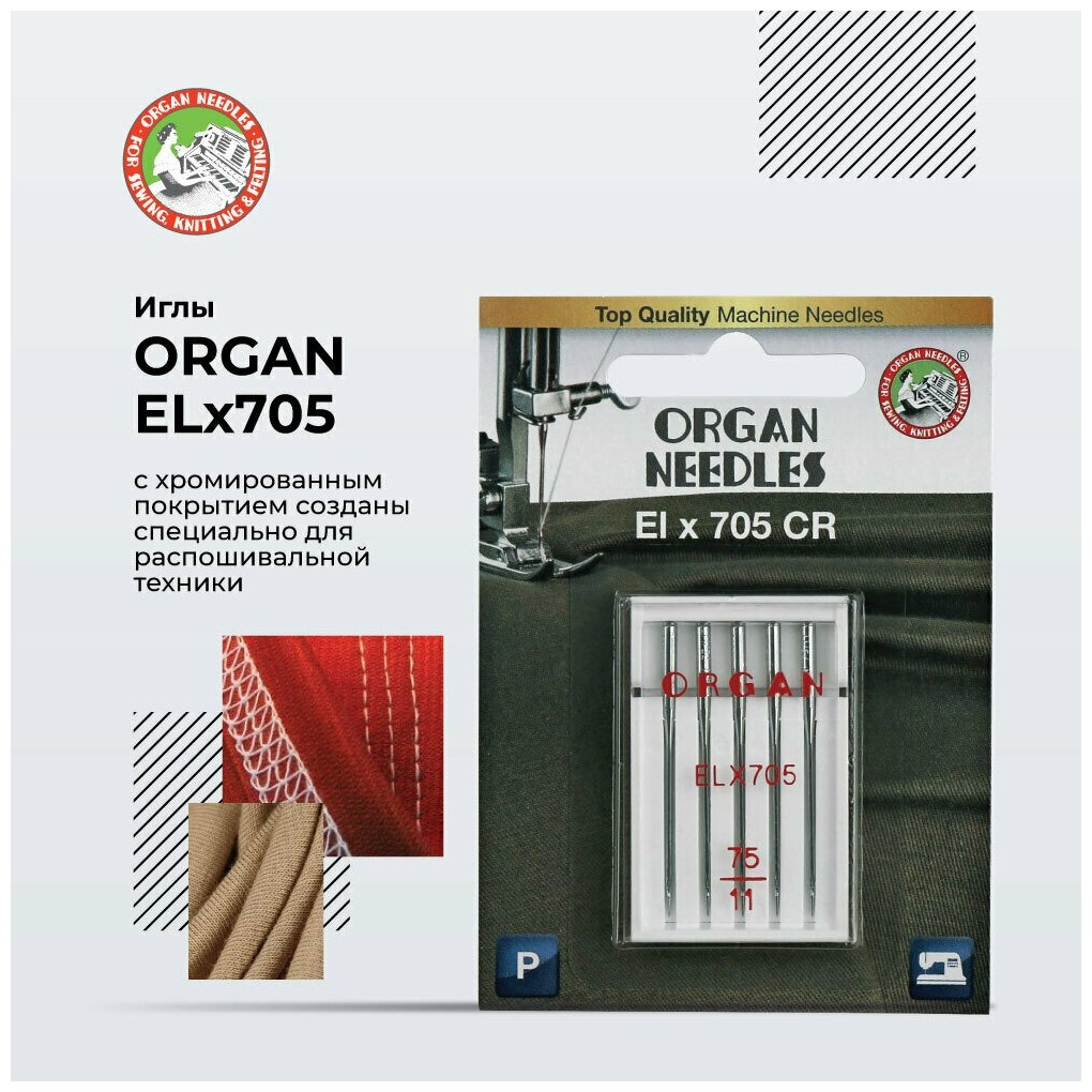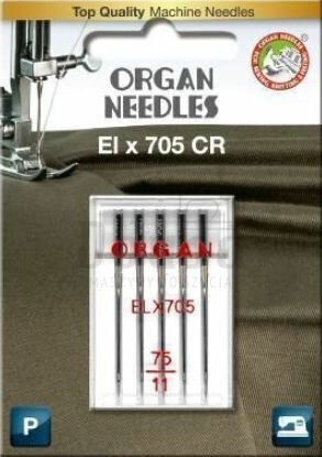 Иглы ORGAN ELх705 CR. CR 5/75 разработаны специально для распошивальных швейных машин. Предназначены для работы с высокоэластичными тканями и трикотажным полотном.