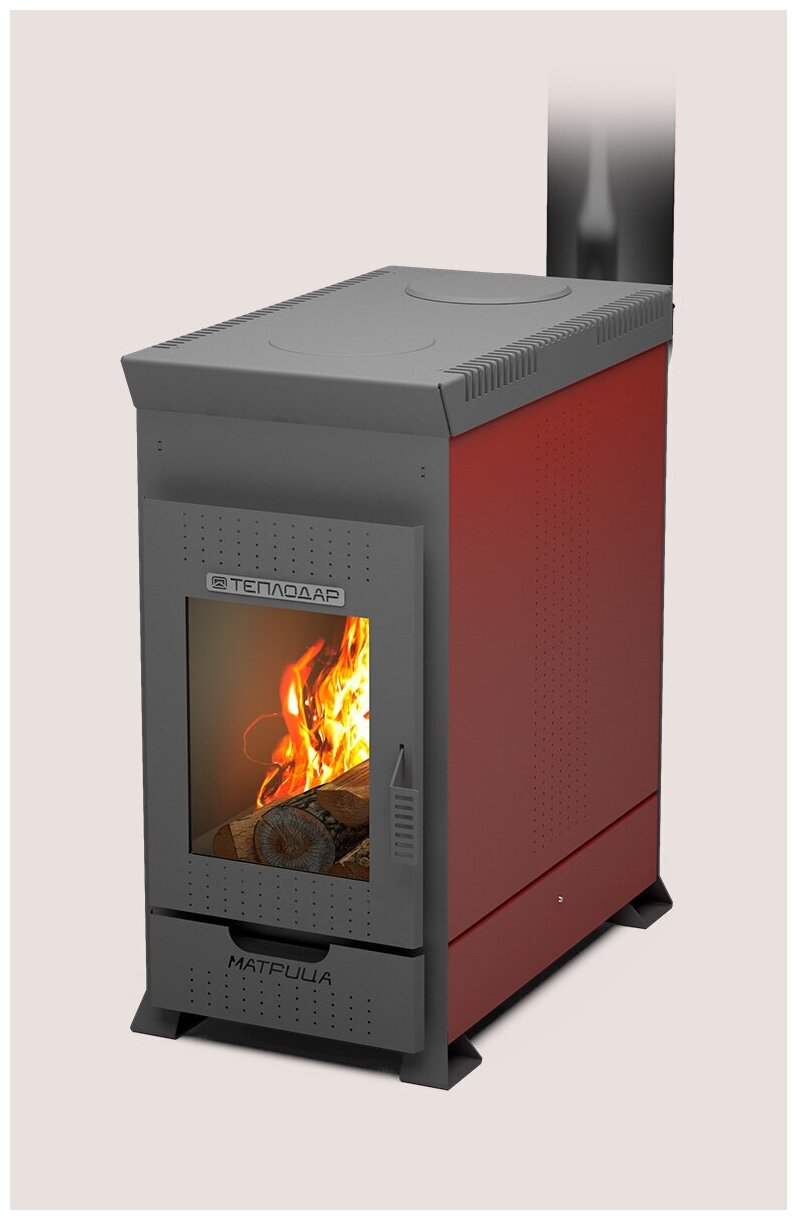 Модель дровяной печи Теплодар МАТРИЦА -100 является идеальным сочетанием превосходных свойств теплоотдачи и надежности действия. Конструкция изделия отличается простотой чистки и исполнением из высококачественных материалов. Прибор оснащается вместительным ящиком зольника, который способен хранить золу от нескольких протопок.