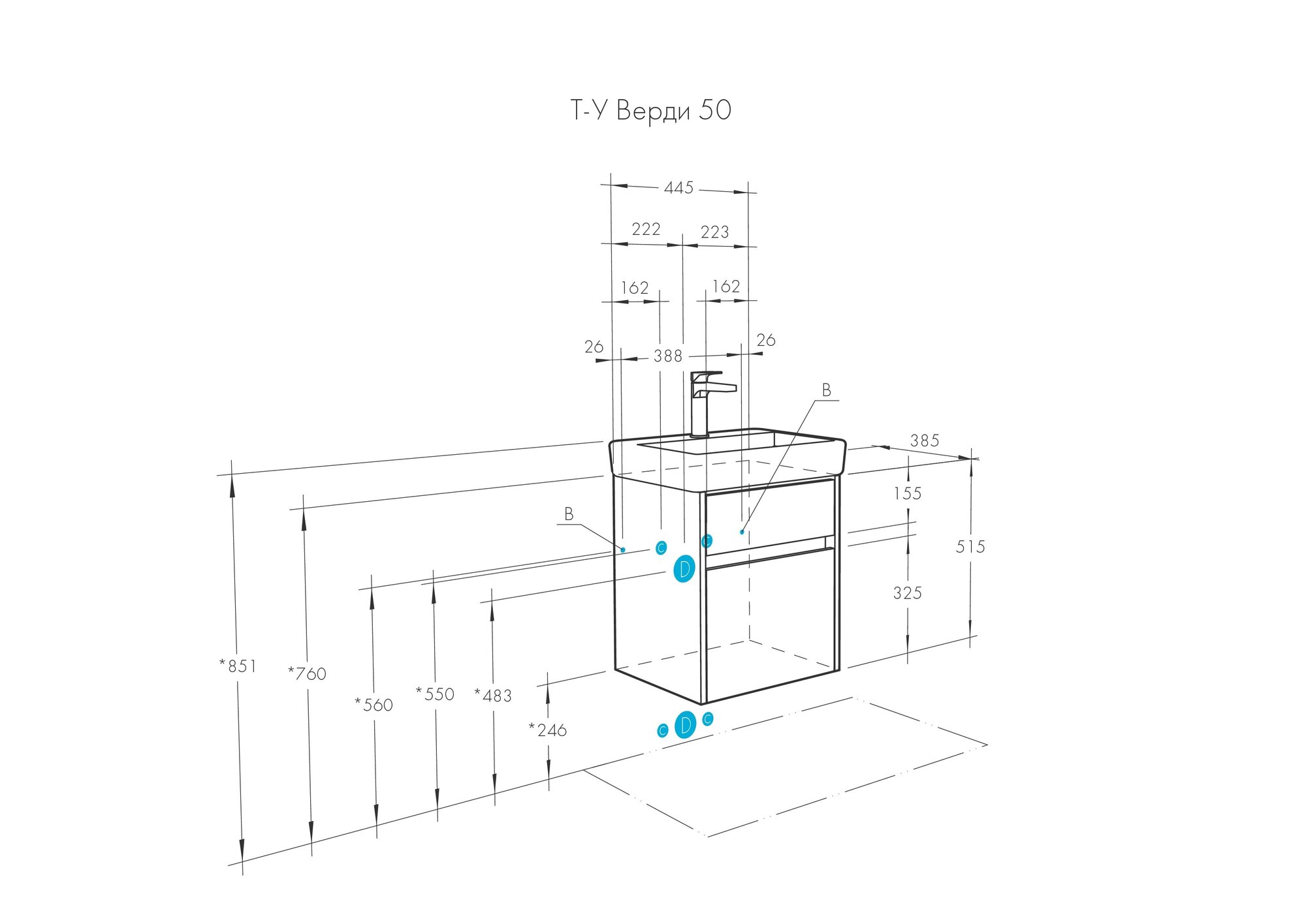 Навесная тумба устанавливается вместе с раковиной в вентилируемой ванной комнате с температурой воздуха от 8 до 25 градусов выше нуля и относительной влажностью воздуха от 40 до 60%. Производитель рекомендует исключить прямое попадание воды на мебель.