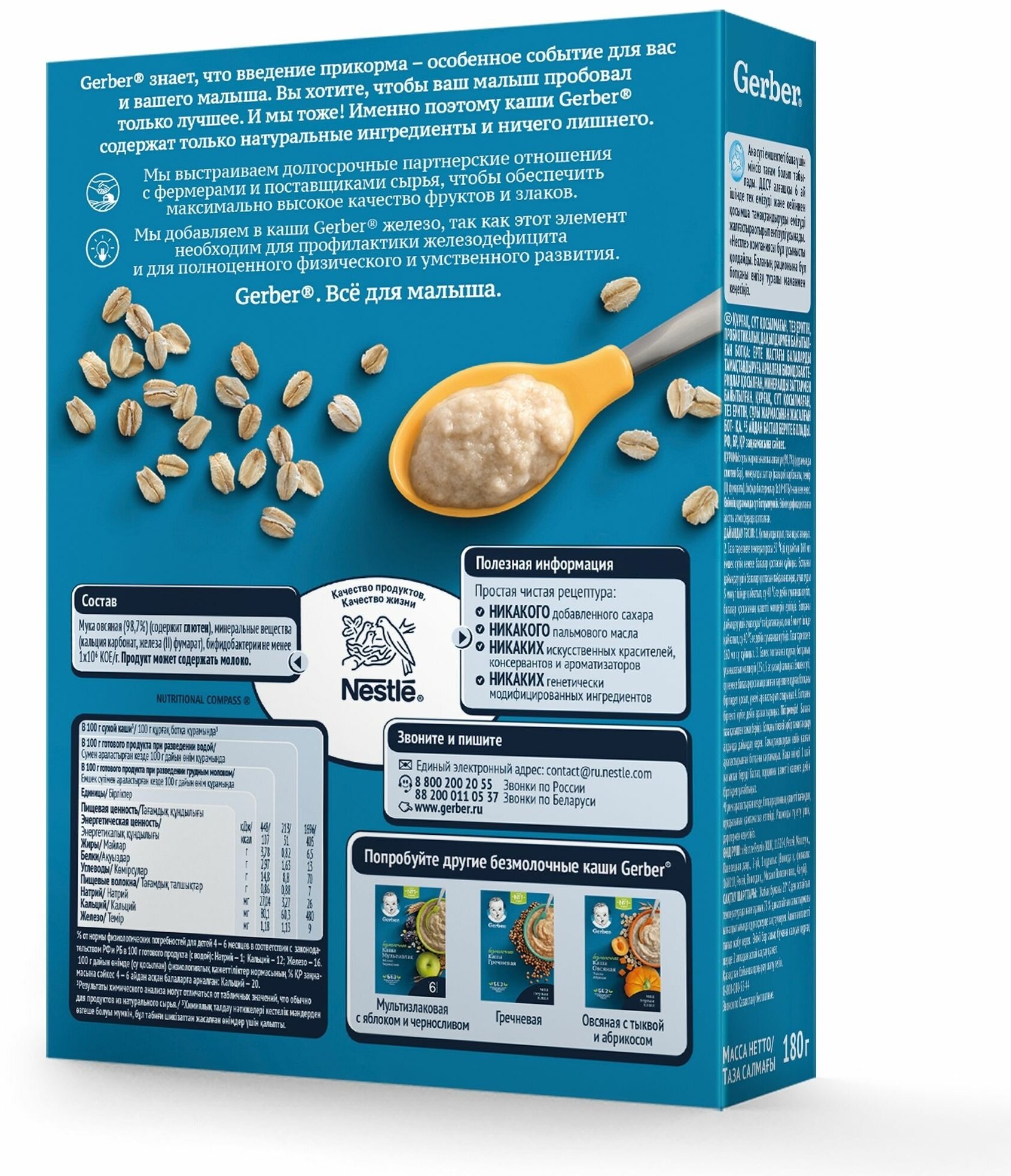 Сервис сравнения цен СкидкаГИД предлагает сравнить цены на товар «Gerber® Безмолочная овсяная каша 180гр (12383421)»