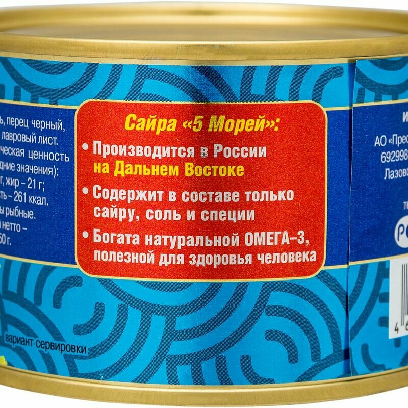 5 Морей Сайра тихоокеанская натуральная в собственном соку 250 г