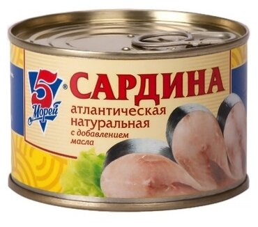 5 Морей Сардина атлантическая натуральная с добавлением масла 250 г