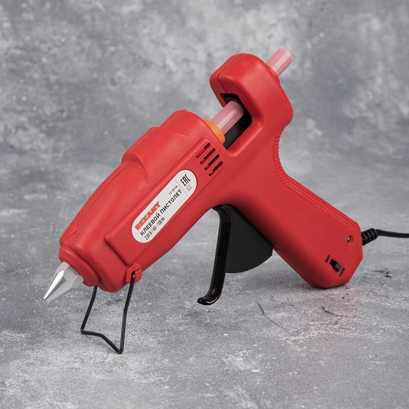 Пистолет клеевой REXANT (60-100 Вт, Ø11 мм) предназначен для прочной фиксации поверхностей с помощью расплавленной клеевой массы. Принцип работы: клеевой стержень плавится в металлической камере с помощью нагревательного устройства и для точного дозированного нанесения при нажатии на курок подается из сопла на склеиваемую поверхность. Используется в моделировании, рукоделии, при выполнении мелкого ремонта, для изготовления упаковочной и сувенирной продукции, монтажа электрических плат, декорирования. Для работы с пистолетом необходимо использовать клеевые стержни диаметром 11 мм. Универсальные клеевые стержни прочно соединяют в любом сочетании детали из картона, ткани, древесины, кожи, резины, керамики, пластика, стекла, металла, пенопласта и т.д. С помощью механизма подачи клея и выходного сопла возможно равномерное или точечное нанесение клея на поверхность. Корпус клеевого пистолета изготовлен из ударопрочной пластмассы и имеет скобу для установки в режиме ожидания.
