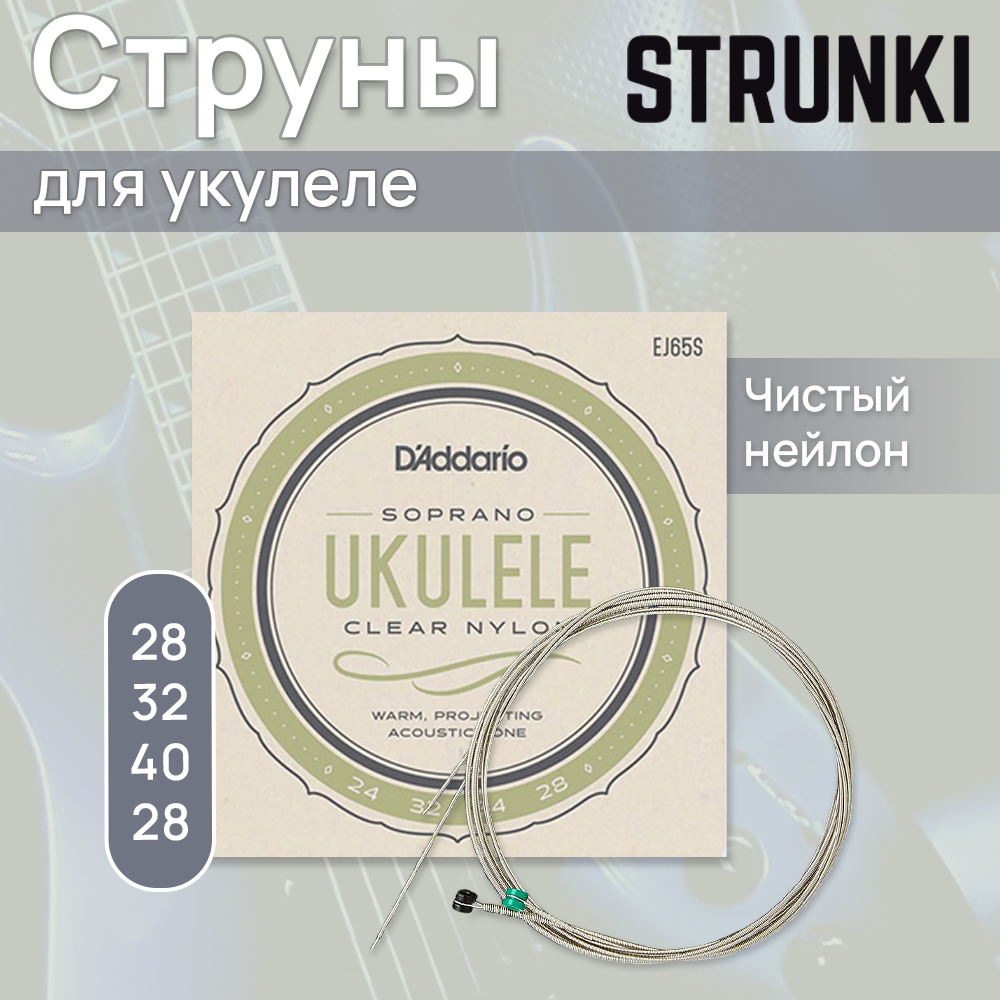 Струны для укулеле размера сопрано. Калибр .024-.032-.034-.028, ориентированы для настройки в строй ADF#B. Сделаны из прозрачного нейлона, обмотка из посеребренной меди. Узнаваемое мягкое и сбалансированное звучание.