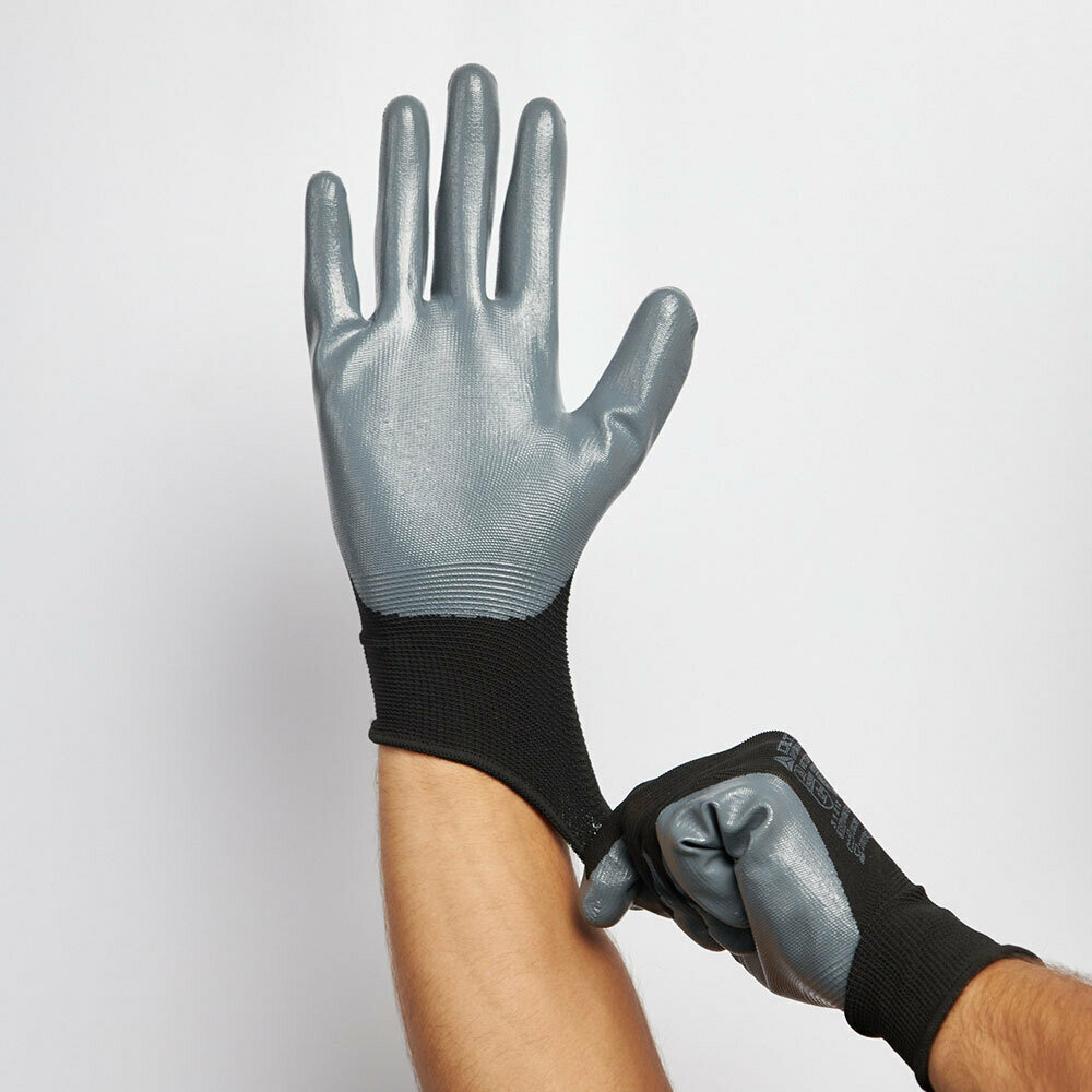 Изготовлены из трикотажа с нитриловым покрытием, обеспечивающим защиту рук от масел, веществ и грязи. Эластичные манжеты способствуют хорошей фиксации на руках.