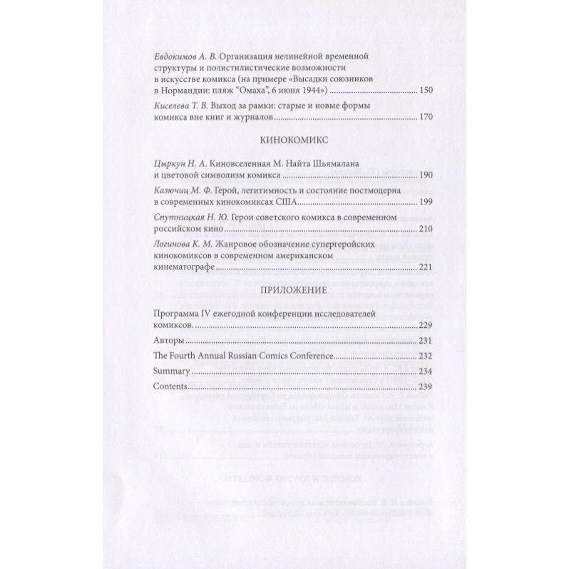 Данная книга представляет собой сборник статей ведущих русскоязычных ученых и блогеров, исследующих комиксы в области литературоведения, истории, японистики, киноведения, социологии. В книге четыре раздела, знакомящих читателя со спецификой комиксов в зависимости от их национальной принадлежности (славянский, японский, американский, европейский комикс) и формы бытования (диафильм, кинокомикс, рекламные технологии). Сборник подготовлен преимущественно по материалам выступлений Четвертой российской конференции исследователей комиксов, состоявшейся весной 2019 г.