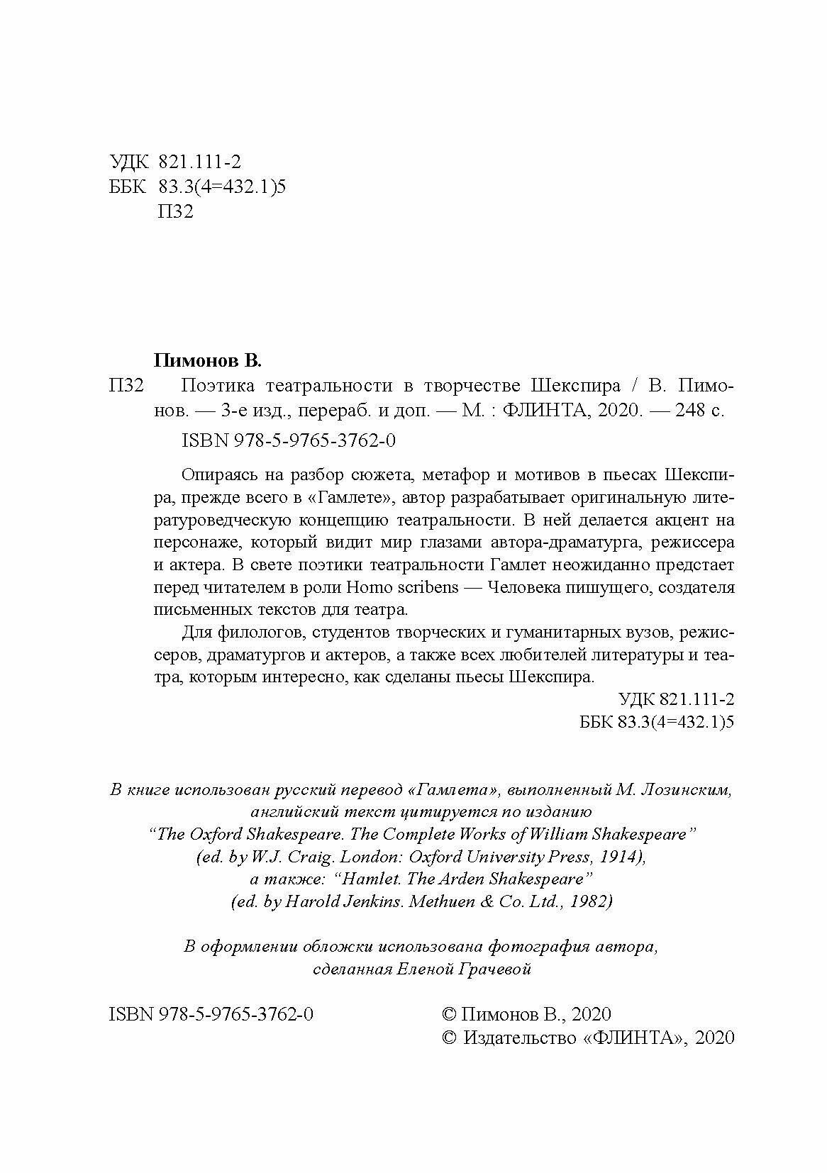 Поэтика театральности в творчестве Шекспира (Владимир Пимонов); ФЛИНТА, 2020