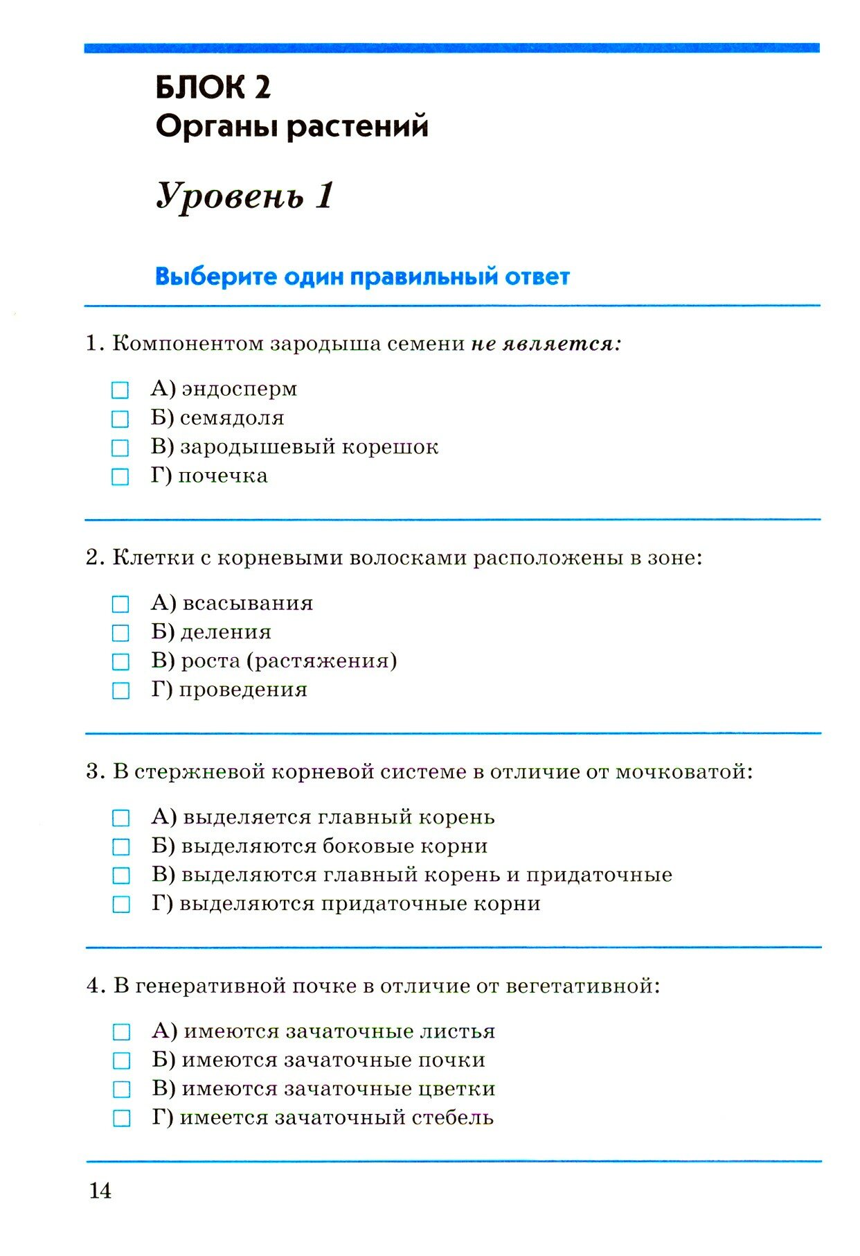 В пособии представлены контрольно-проверочные материалы. Тестовые задания по предмету "Биология" для учащихся 6-го класса разработаны на основе программы по биологии И. Н. Пономаревой (издательский центр "Вентана-Граф").