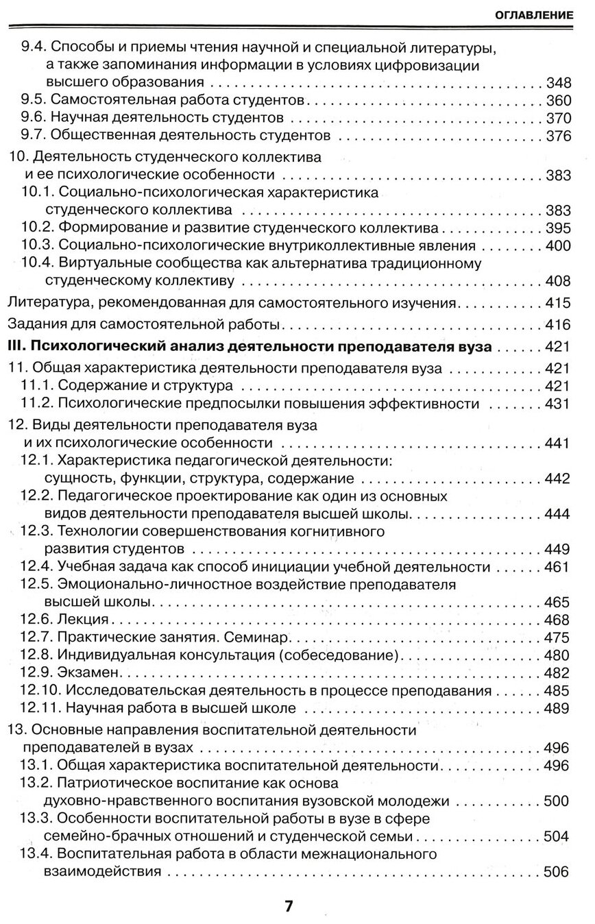 Учебно-методическое пособие раскрывает современные подходы к методологическим проблемам высшего образования, психологическому анализу деятельности и личности основных субъектов образовательного процесса - преподавателя и студента, освещает социально-психологические особенности деятельности коллектива кафедры и администрации вуза. Для помощи в самостоятельной работе обучающихся к каждой главе прилагается комплекс практических заданий, позволяющих не только закрепить, но и более глубоко осмыслить изучаемый материал.